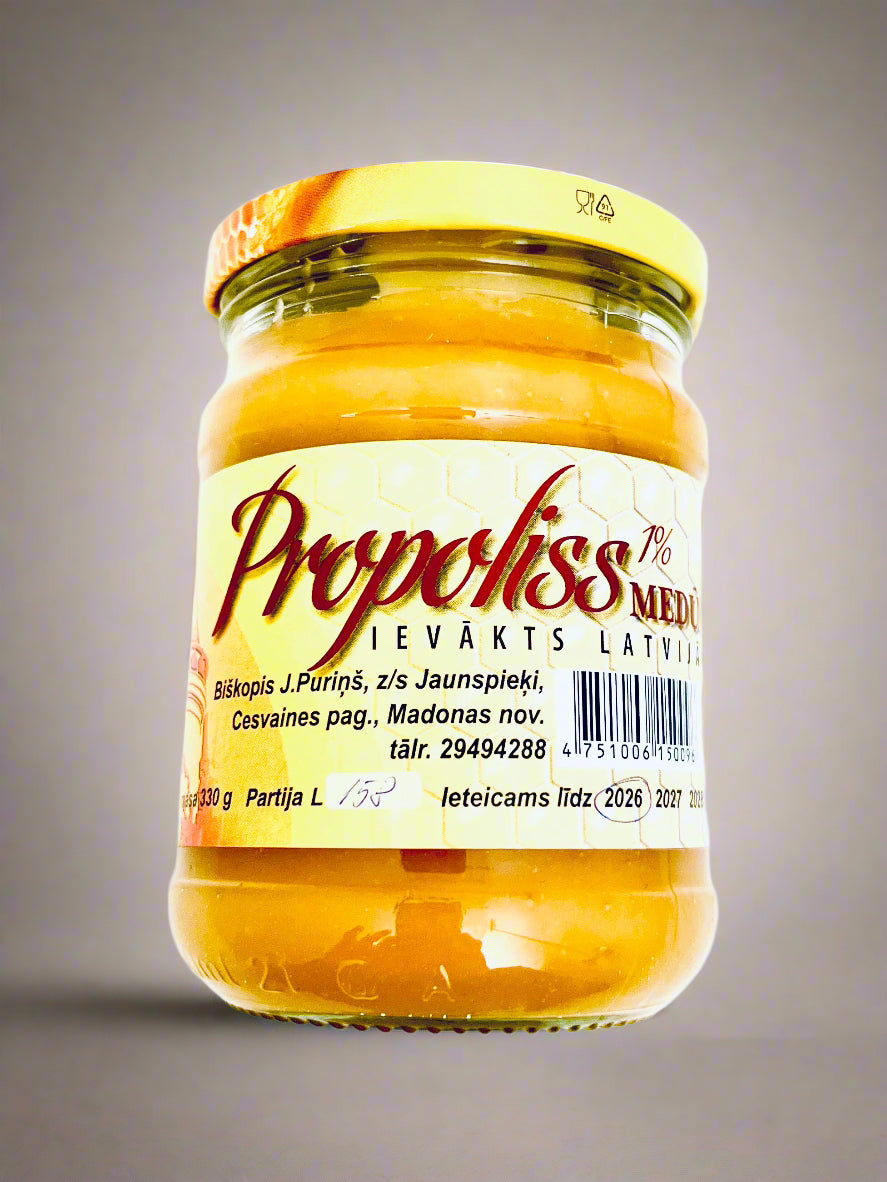 Propoliss medū ir bagāts ar medus un propolisa labajām īpašībām. Šādā maisījumā propolisu ir vieglāk uzņemt uzturā tiem, kam nepatīk propolisu lietot tīrā veidā.